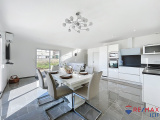 Une entrée avec placard puis un dégagement nous mène à la pièce de vie : Cuisine en angle , toute équipée avec des éléments éléctromenagers de qualité , espace repas et salon très lumineux grâce aux deux baies vitrées en aluminium dont une à un accès direct à la terrasse de 15m2.